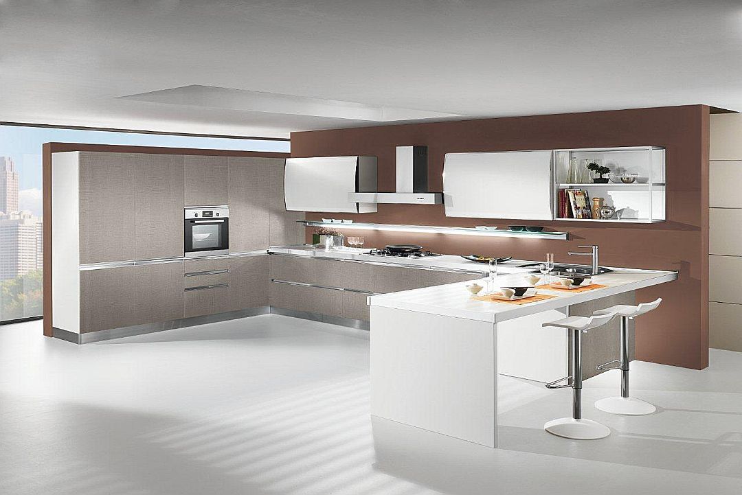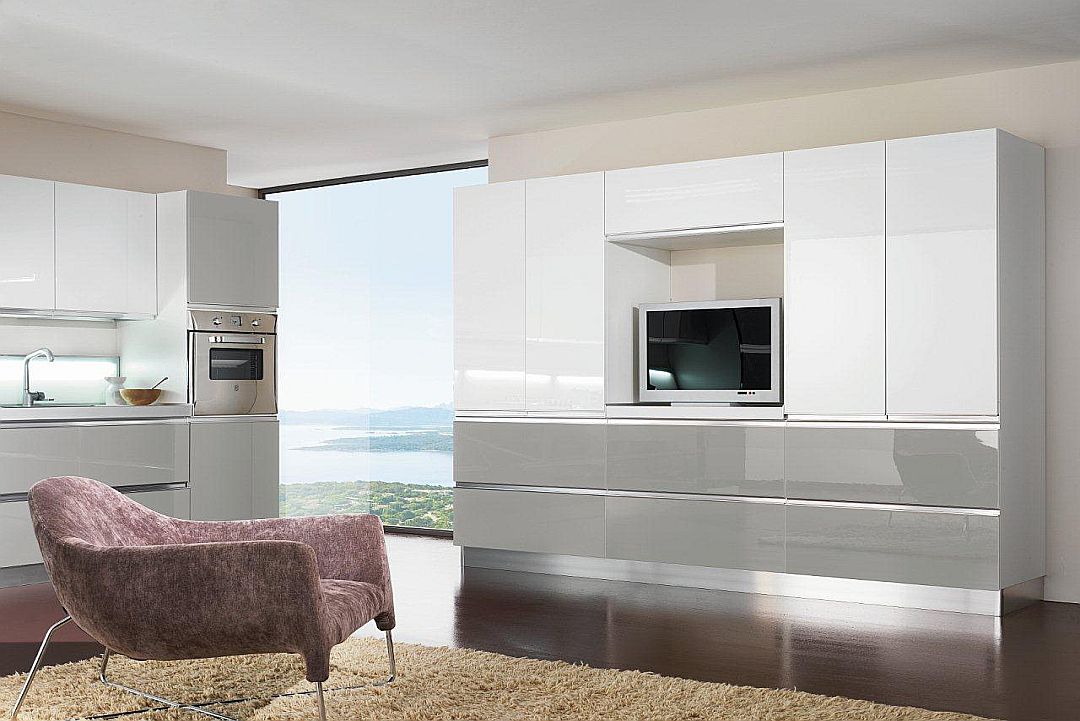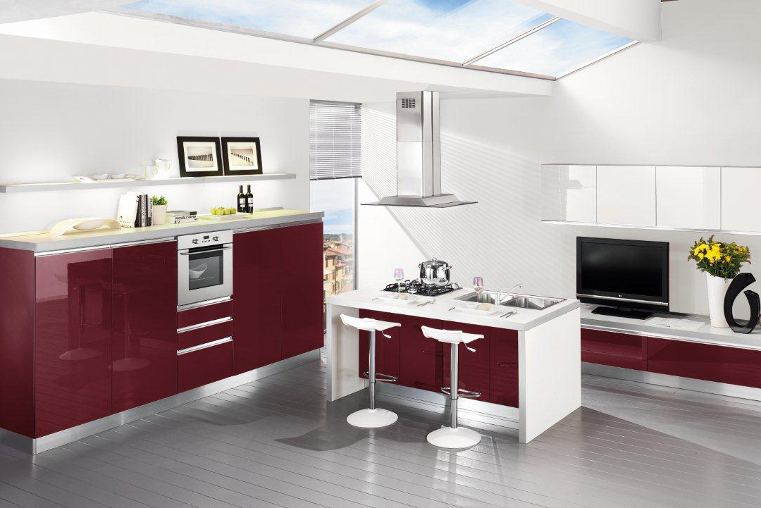 Κουζίνα από πολυμερικό βακελίτη. Με ενσωματομένο INOX πόμολο. Μια πολύ μοντέρνα κι εντυπωσιακή κουζίνα με απόλυτη ελευθερία κινήσεων στο σχεδιασμό της. Σε 2 γιαλιστερά χρώματα και σε 3 ματ με φινίρισμα ξύλου.